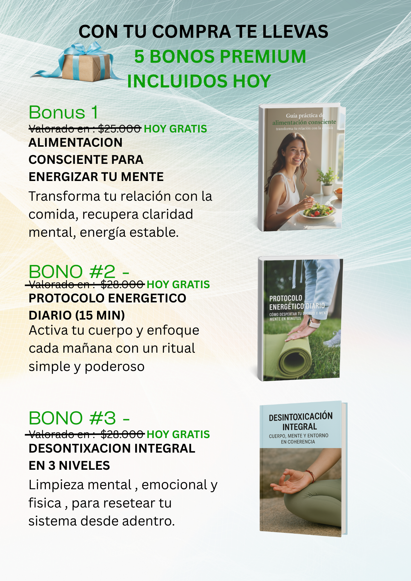 Sí. Dentro del e-book encontrarás ejercicios, rutinas simples y un plan práctico que podés aplicar día a día para transformar tu energía y tus hábitos.