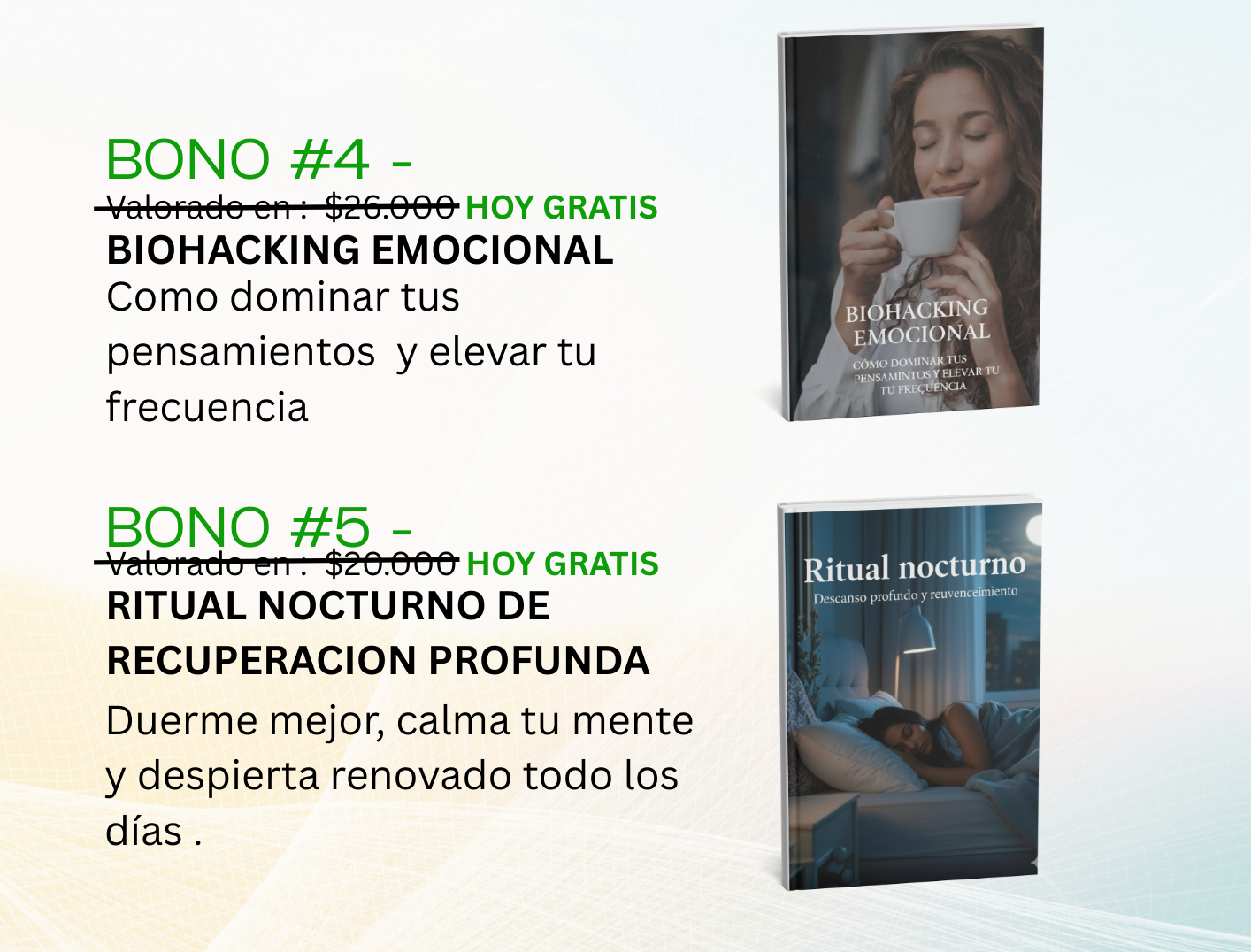 No. Este enfoque de biohacking y alimentación consciente se basa en hábitos naturales y gratuitos que podés aplicar con lo que ya tenés a mano.